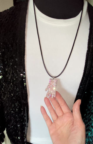 Austrian Crystal Mini Glove Necklace with crystals on both sides. Comes on a Leather Cord.